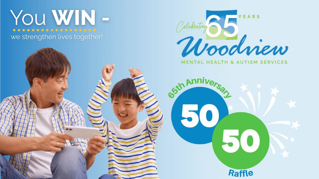 In honour of our 65th anniversary, Woodview held its first-ever online 50/50 raffle to raise funds for the mental health and autism programs that strengthen lives in our communities. With every ticket purchased, supporters helped grow the jackpot and ensure that children, youth, adults, and families continue to receive the care they need. Thank you to everyone who joined in and made this celebration fundraiser such a success!